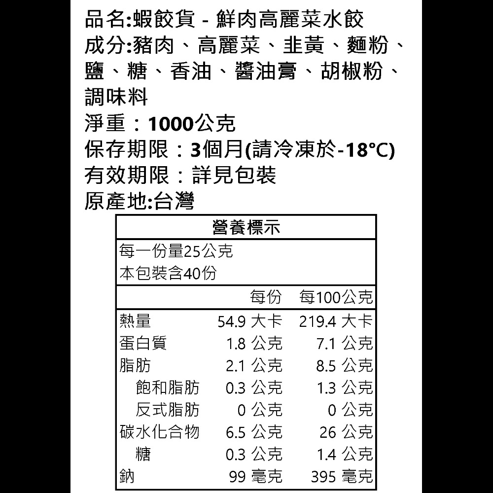 鮮肉高麗菜水餃