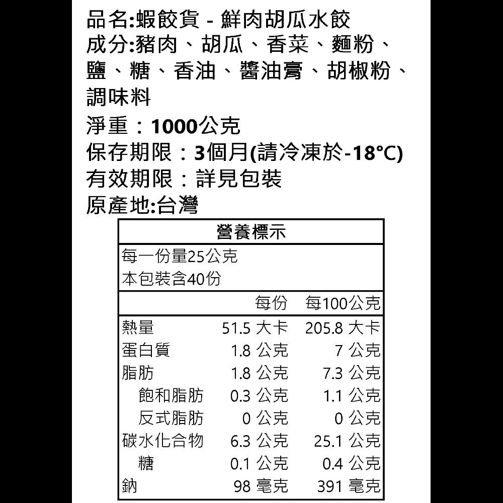 - 胡瓜清脆:保留其天然的甜味和爽脆質感,為水餃帶來清新的口感。